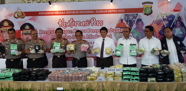 Dari pengungkapan itu, polisi berhasil menyita barang bukti 1998 gram sabu, uang tunai sebesar Rp 2,7 miliar, delapan unit mesin cuci dan dua unit kendaraan roda empat.