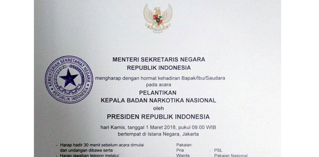 Kementerian Sekretariat Negara telah mengagendakan acara pelantikan pada Kamis (1/3) pukul 09.00 WIB. Dalam foto yang tersebar di kalangan media pihak yang diundang diminta untuk hadir 30 menit sebelum acara pelantikan.