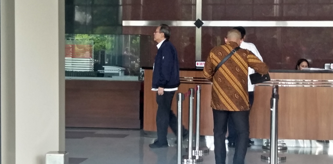 Oka bersama seorang pria datang ke gedung KPK di kawasan Kuningan, Jakarta Selatan, Senin (26/3), sekitar pukul 10.23 WIB. Oka mengenakan kemeja berwarna putih dengan jaket biru tua, serta celana berwarna hitam.