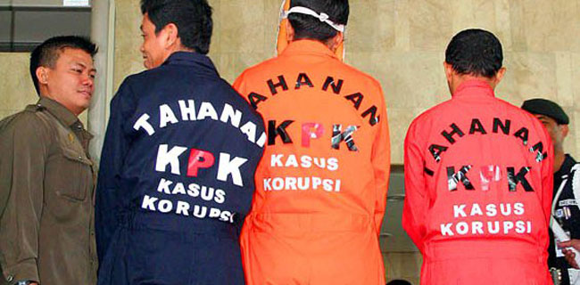 Para tersangka ditahan setelah menjalani pemeriksaan penyidik. Mereka nampak mengenakan rompi orange saat keluar gedung KPK.
