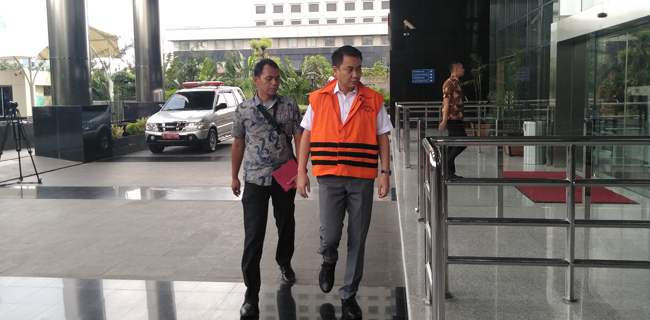 Fayakhun tak membawa apapun dan bungkam saat dikawal seorang petugas memasuki lobi gedung antirasuah.