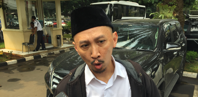 Permadi yang mengenakan kemeja putih ditutup sweater hitam lengkap dengan kopiah dan pin GP Ansor, terlihat datang terburu-buru ke Direktorat Reserse Kriminal Khusus lantaran molor dari jadwal yang diagendakan yakni pukul 12.00 WIB.