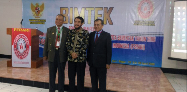 Acara yang berlangsung hingga Kamis, 26 April 2018 mendatang ini dibuka secara resmi oleh Ketua MK, Anwar Usman. Selain Teguh, hadir juga Sekjen Ferari Kores Tambunan dan seluruh jajaran DPP Ferari. Sementara Bimtek tersebut diikuti oleh 150 peserta.