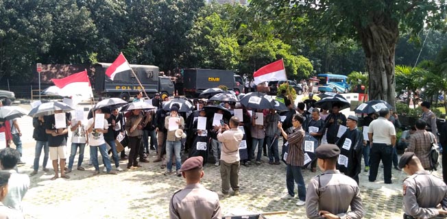 Dalam aksi tersebut masa aksi mengenakan payung hitam dan membawa bendera merah putih. Aksi juga dilaksanakan kurang lebih selama satu jam dengan pengawalan aparat Kepolisian.