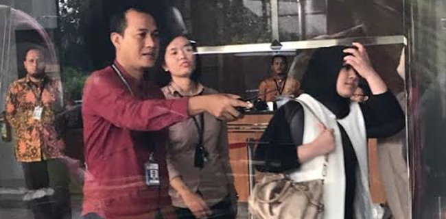Istri Zumi Zola ini memilih bungkam dan terus berjalan cepat hingga masuk ke dalam mobil berwarna putih di depan Gedung KPK.