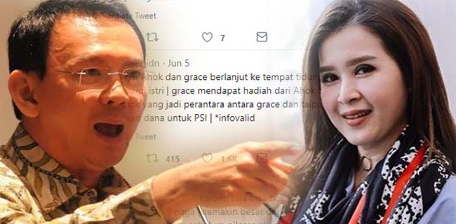 Grace tak terima saat saat akun Twitter @Hulk_idn menuduh dirinya berselingkuh dengan Mantan Gubernur DKI Jakarta Basuki Tjahja Purnama alias Ahok.