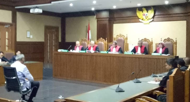 "Mengadili, menyatakan terdakwa terbukti melakukan tindak pidana merintangi penyidikan KPK secara bersama-sama dalam perkara korupsi," ujar Ketua Majelis Hakim Mahfudin di ruang sidang Pengadilan Negeri Tipikor Jakarta, Senin (16/7).