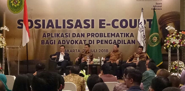 Setiap advokat wajib mengikuti aplikasi E-Court untuk beracara di pengadilan. E-Court merupakan sistem layanan online bagi pendaftaran perkara, sekaligus pembayaran perkara, serta pemanggilan secara elektronik.