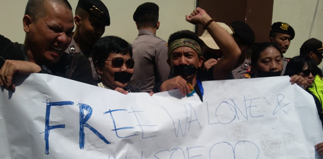Mereka melakukan bentuk protes dengan melakban mulut dan kedua tangan mereka. Ini menandai bahwa peran jurnalis tidak boleh terkekang.