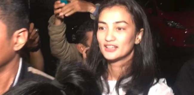 Memasuki halaman Polda Metro Jaya, Atiqah datang mengenakan kemeja berwarna putih dan rambut terurai panjang pada pukul 21.00 WIB.