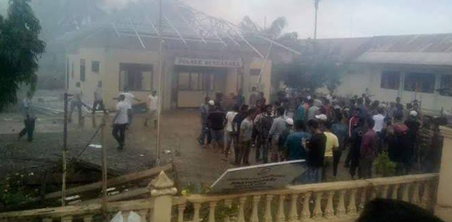 Warga ngamuk mengetahui kabar kematian AY. Mereka lantas mendatangi Polsek dan membakarnya. Sejumlah ruangan hangus dilalap api, termasuk kendaraan operasional milik Polsek.