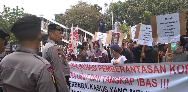 "KPK sudah mengadili banyak kader Partai Demokrat yang terlibat korupsi salah satunya kasus Wisma Atlet Hambalang, tetapi kenapa Ibas tidak pernah dipanggil?" lantang orator, Gusti dari mobil komando.