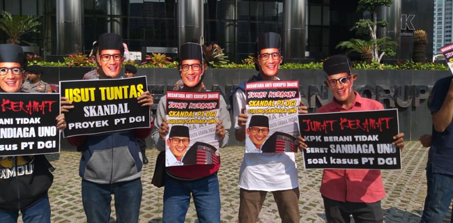 "Adapun perbuatan yang diduga mengakibatkan negara merugi sebesar Rp 25 miliar itu proyeknya digarab oleh Sandiaga Uno saat masih menjabat komisaris di PT DGI," kata koordinator aksi NAKO, Dilan dalam keterangan tertulis, Sabtu (27/10).