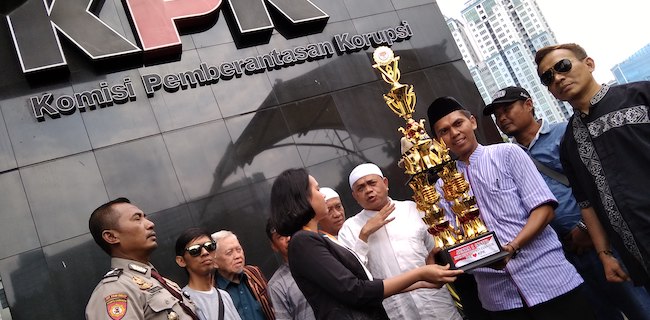 "Dengan piala ini, kami mengucapkan terima kasih kepada KPK yang telah menangkap Bupati Cianjur," ujar Ketua Presidium Rakyat, Ridwan Mubaroq di Gedung Merah Putih KPK, Kuningan, Jakarta, Selasa (18/12).