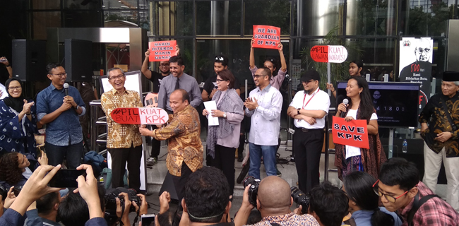 Demikian disampaikan mantan Ketua KPK, Abraham Samad di sela-sela aksi Koalisi Masyarakat Sipil Anti Korupsi di lobi Gedung Merah Putih KPK, Kuningan, Jakarta, Selasa (15/1).