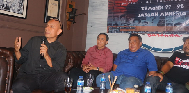 Hal itu diungkapkannya dalam diskusi publik bertema "Pelaku Masih Berkeliaran Membangun Dinasti Politik, Pelanggaran HAM Tidak Berlaku di Indonesia? (Tragedi 97-98 Jangan Amnesia)" di kawasan Sarinah, Jakarta Pusat, Selasa (15/1).