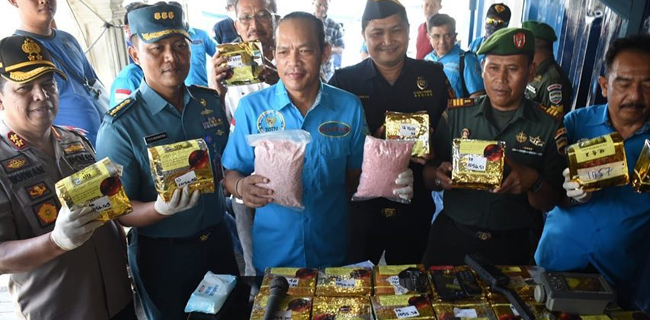 Dalam konferensi pers yang dilaksanakan di Dermaga Bea Cukai Belawan hari Selasa (15/1) kemarin, ditunjukkan barang bukti hasil tangkapan serta kelima tersangka tersebut.