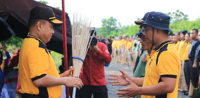 Usai upacara, Kapolda menyerahkan secara simbolis peralatan kebersihan kepada personil kebersihan yang terdiri dari Polda Kalsel dan Satpol PP.