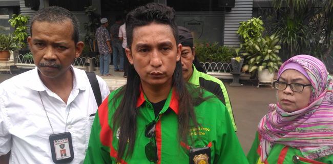 Muhammad Firdaus Oiwobo yang merupakan pelapor dan ketua Relawan Militan Prabowo menghadiri gedung Direktorat Reserse Kriminal Khusus Polda Metro Jaya untuk memenuhi panggilan Polisi dalam rangka pemeriksaan.
