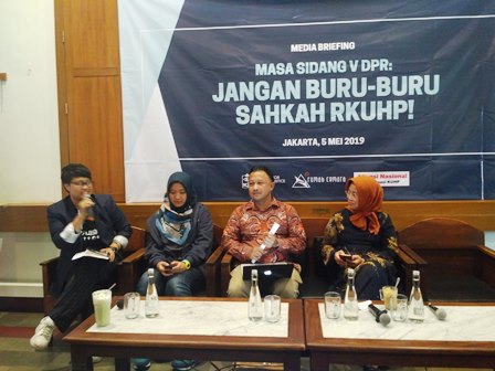 "Kami menuntut pemerintah dan DPR tidak terburu-buru mengesahkan RKUHP karena RKUHP masih memiliki banyak permasalahan. Pemerintah dan DPR pada masa sidang ke-V harus membuka semua perkembangan pembahasan RKUHP yang telah dilakukan," terang Meidina.