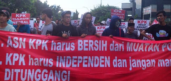"KPK harus responsif, sekarang sudah banyak desakan rakyat bahwa Novel harus dipecat karena sudah berpolitik," kata Koordinator KMP, Mas Latu di halaman Gedung KPK, Jakarta, Selasa (6/5).