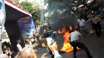 Saat itu, empat polisi yakni Ipda Erwin Yudha Wildani, Briptu Fransiskus Aris Simbolon, Briptu Muhammad Yudi Muslim dan Briptu Anif Endaryanto Pratama mencoba memadamkan ban bekas yang dibakar mahasiswa. Saat sedang melakukan pemadaman, justru oknum mahasiswa melempar bensin ke arah api yang beakibat empat polisi tersebut terbakar.