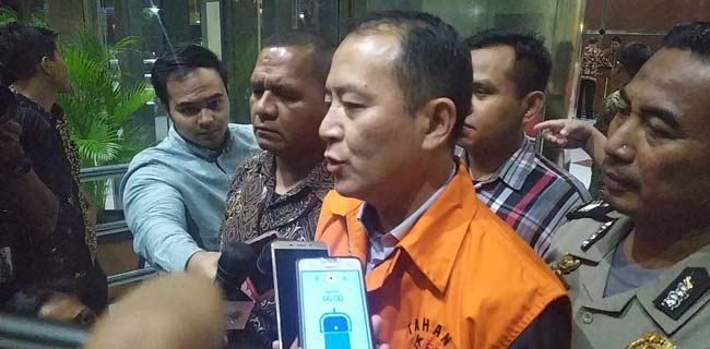Saat menuju mobil tahanan, Toto merasa difitnah dan dikorbankan oleh saksi Kadiv Land Acquisition and Permit PT Lippo Cikarang, Edi Dwi Soesianto (Edisus).