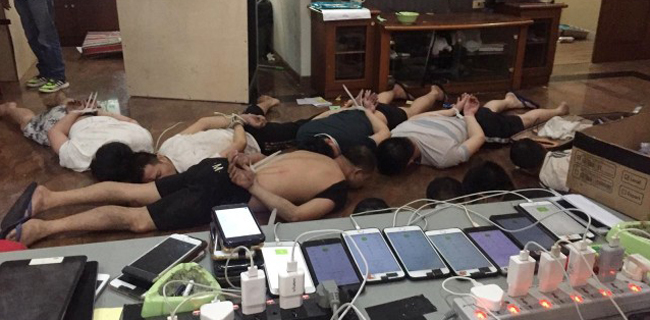 Puluhan WNA China digerebek karena diduga melakukan penipuan melalui sambungan telepon. Modusnya, pelaku memanfaatkan jaringan telekomunikasi di Indonesia untuk melancarkan aksi. Mereka menelepon para korban yang ada di China dan melakukan penipuan dan meminta sejumlah uang.