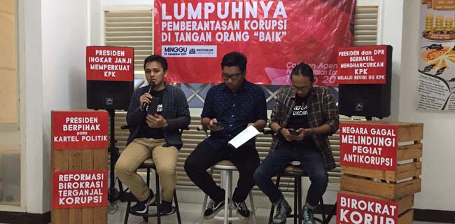 Lumpuhnya Pemberantasan Korupsi Di Tangan Orang "Baik", di kantor ICW, Kalibata, Jakarta Selatan, Minggu (29/12).