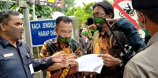Saat menyerahkan permohonan judicial riview, Iwan Sumule dan kawan-kawan sempat dihadang oleh pihak pengamanan gedung MK.