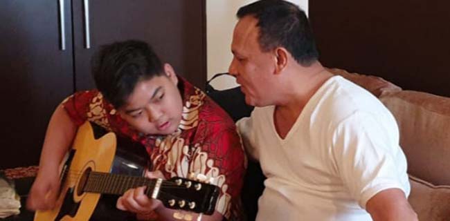Salah satunya berkomunikasi dan bermain musik bersama sang anak yakni Rizqi Arfiananda Dhira Putra, Sabtu (6/9).