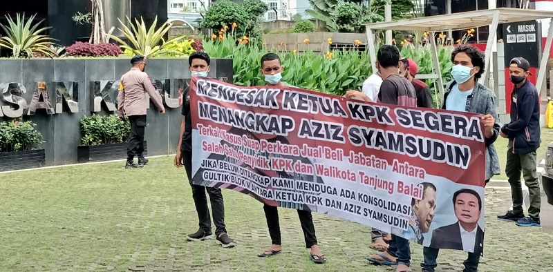 Massa yang mengatasnamakan diri sebagai Kelompok Organisasi Mahasiswa itu meminta Lembaga Antirasuah menangkap Wakil Ketua DPR RI, Azis Sayamsuddin, karena diduga terlibat dalam kasus suap penanganan perkara Walikota Tanjung Balai Tahun 2020-2021.