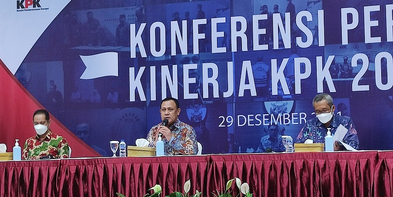 “KPK menyadari sepenuhnya bahwa pemberantasan korupsi tidak dapat dilaksanakan oleh KPK sendiri, karenanya perlu orkestrasi, dukungan dan sinergi seluruh elemen masyarakat dalam pemberantasan korupsi, baik melalui upaya pendidikan, pencegahan, maupun penindakan memiliki peran yang sangat penting,†kata Firli saat menyampaikan capaian kinerja KPK tahun 2021 di Gedung KPK, Rabu (29/12).