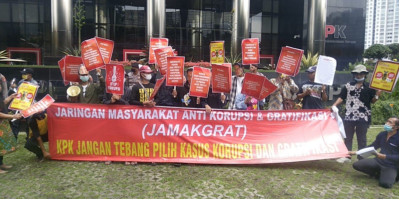 Hal itu didesak oleh Jaringan Masyarakat Anti Korupsi dan Gratifikasi (Jamakgrat) saat menggelar aksi unjuk rasa di depan Gedung Merah Putih KPK, Jalan Kuningan Persada Kav 4, Setiabudi, Jakarta Selatan pada Selasa siang (22/2).