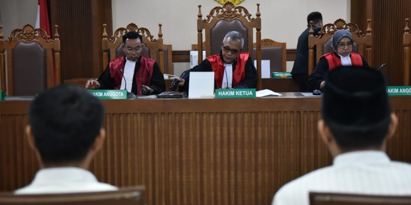 Majelis Hakim PN Jakpus menjatuhkan vonis pidana 5 bulan 25 hari kepada Awwab dan Marsel karena melanggar pasal 162 UU Minerba soal perintangan kegiatan usaha pertambangan.