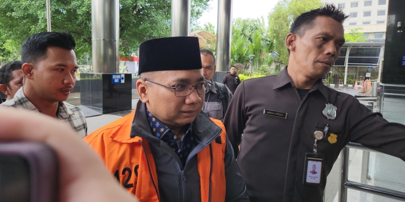 Dengan mengenakan rompi tahanan KPK, Yaqut tiba di Gedung Merah Putih KPK hari ini pukul 10.33 WIB.