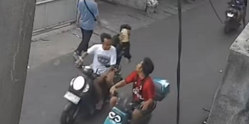 Berdasarkan rekaman CCTV yang beredar, saat kejadian korban tengah mengendarai sepeda motor listrik. Tiba-tiba, dua pria tak dikenal datang berboncengan dari arah belakang.