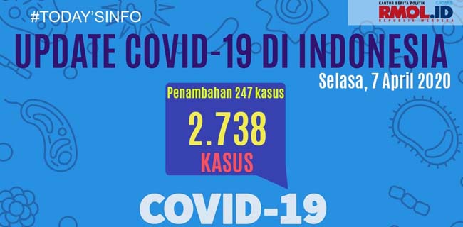 Untuk jumlah pasien positif Covid-19 yang bertambah ialah sebanyak 247 kasus, sehingga total 2.738 pasien.
