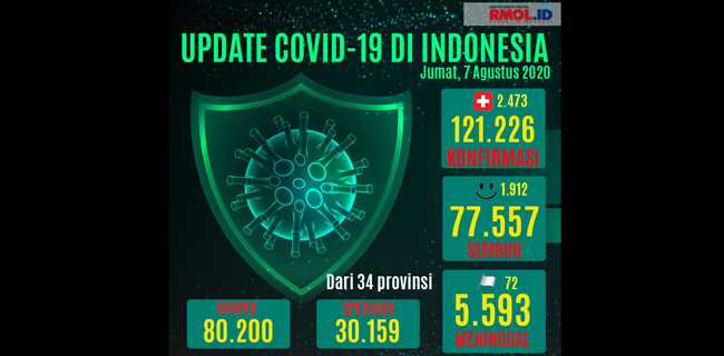 Berdasarkan data yang dirilis Satuan Tugas (Satgas) Penanganan Covid-19, tambahan kasus positif baru hari ini mencapai 2.473, sehingga totalnya tembus ke angka 121.226 kasus positif di Indonesia.