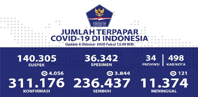Selain itu, Satgas mencatat 140.305 orang teridentifikasi tertular Covid-19, atau biasa disebut suspek. Mereka tersebar di 498 kabupaten/kota terdampak di 34 provinsi di Indonesia.