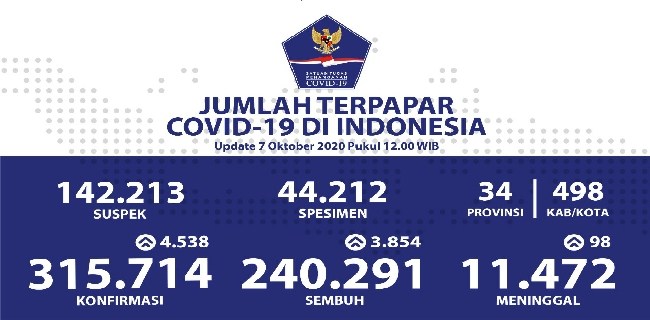 data yang diumumkan Satuan Tugas (Satgas) Penanganan Pandemi Covid-19,
