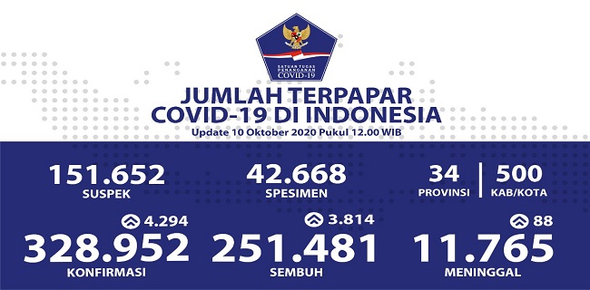 Angka tersebut jauh lebih rendah jika dibanding dengan tambahan pasien positif baru yang sebanyak 4.294 orang pada hari ini. Sehingga, jumlah total kasus positif menjadi 328.952 orang.