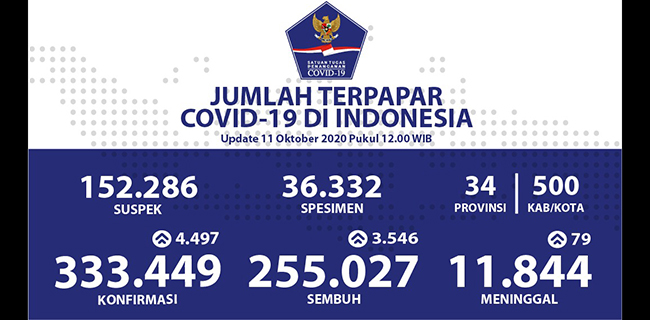Per hari ini juga, pada tambahan pasien positif baru hari ini sebanyak 4.497 kasus dan kumulatifnya mencapai 333.449 kasus. Kasus Covid-19 yang masih aktif per hari ini sejumlah 66.578.