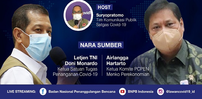 Hal inilah yang akan dikupas oleh Ketua Komite Kebijakan Pengendalian Covid-19 dan Pemulihan Ekonomi Nasional, Airlangga Hartarto, bersama Ketua Satgas Penanganan Covid-19, Letjen TNI Doni Monardo.