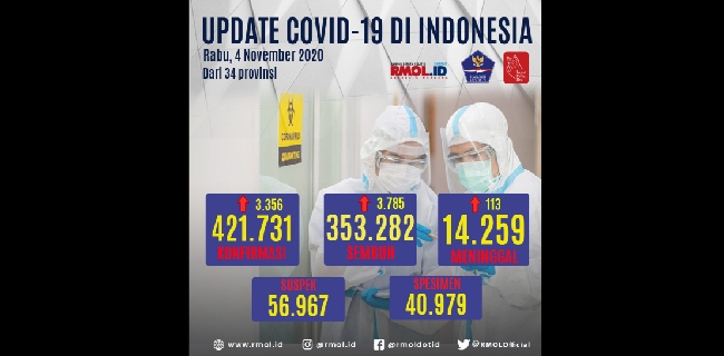 Berdasarkan data yang dirilis Satuan Tugas (Satgas) Penanganan Covid-19 per Rabu (4/11), jumlah kasus sembuh hari ini tercatat meningkat sebanyak 3.785 orang, atau lebih tinggi dari tambahan kasus positif yang sebanyak 3.356 orang.