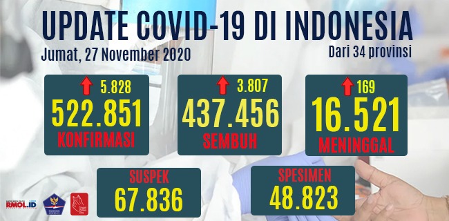 Berdasarkan data yang dirilis Satuan Tugas (Satgas) Penanganan Covid-19, tambahan kasus positif tercatat sebanyak 5.828 orang. Sehingga, totalnya kini menjadi 522.581 orang.