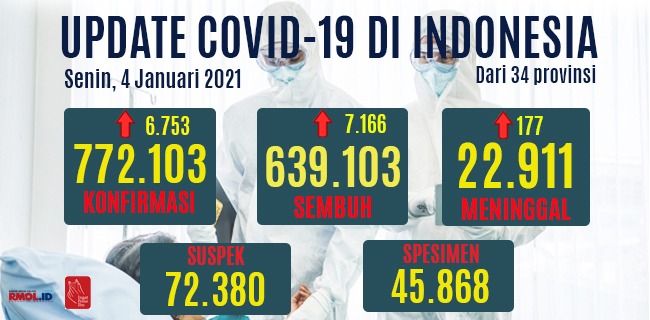 Secara total, kasus positif di Tanah Air kini menjadi 772.103 orang. Adapun untuk total kasus sembuh kini persentasenya sudah 82,8 persen atau sudah mencapai 639.103 orang.