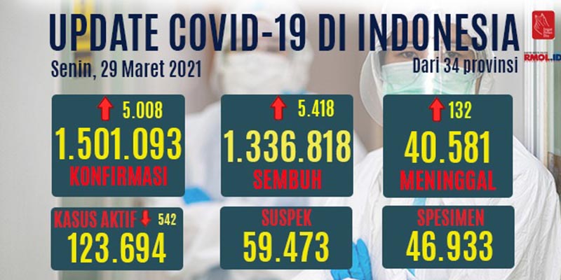 Dari jumlah tambahan tersebut, total orang yang terinfeksi Covid-19 di Indonesia kini sudah mencapai 1.501.093 orang. Sementara, total kasus sembuh kini sudah mencapai 1.336.818 orang.