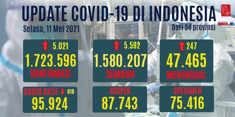Dengan data di atas, dapat diketahui adanya penurunan kasus aktif. Saat ini, kasus aktif Covid-19 di Indonesia tinggal 95.924 atau turun hingga 818 orang.