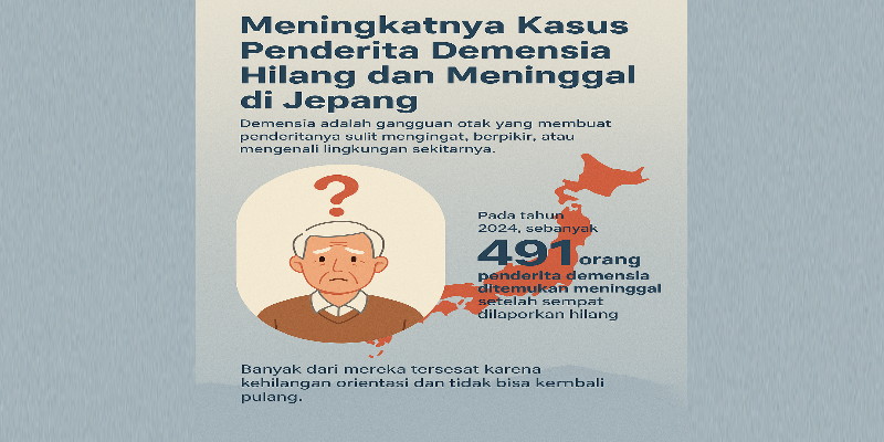 Sepanjang tahun 2024, total 18.121 orang dengan demensia atau yang diduga mengidap demensia dilaporkan hilang. Sebagian besar dari mereka berhasil ditemukan dalam waktu satu minggu setelah laporan dibuat.
